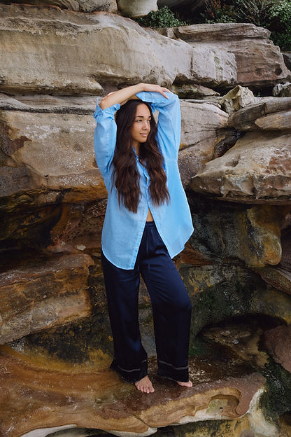 Silk Pants with Contrast Stitching- Midnight Blue